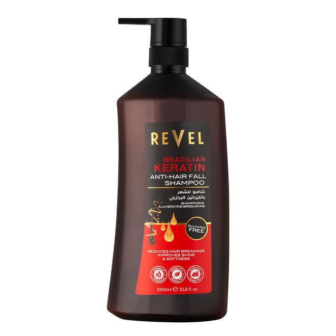 Strengthen your hair from within with Revel Anti-Hair fall Keratin Shampoo that helps lock moisture into strands while improving hair's elasticity, reducing breakage and providing smooth, glossy hair from root to tip. Hydrolyzed keratin: helps rebuild the hair’s natural