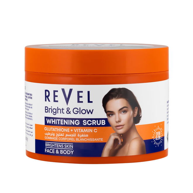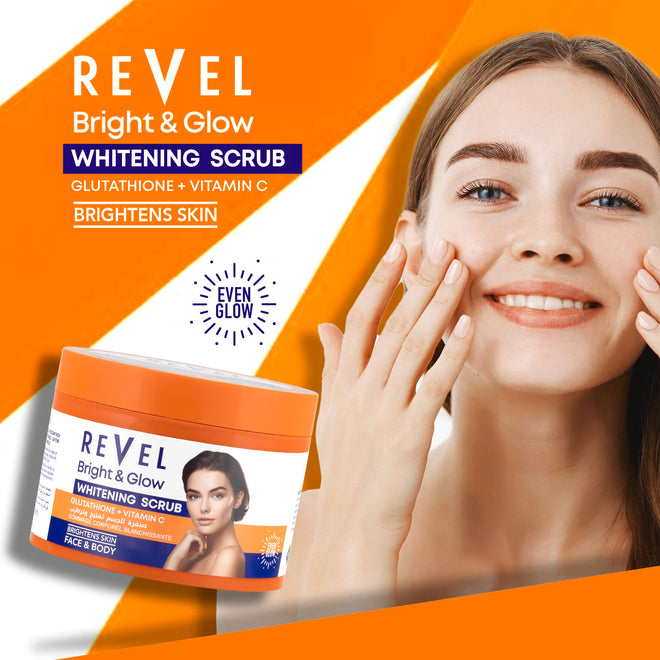Revel bright & glow face & body whitening scrub combines antioxidant-rich