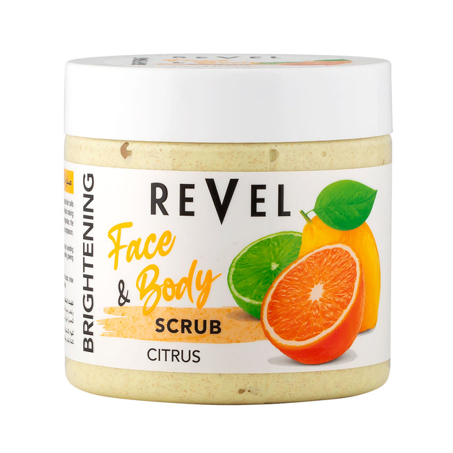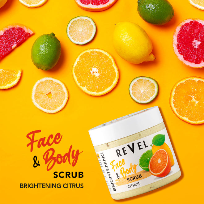 Revel Citrus face & body scrub, with its unique formula sloughs off dead skin cells