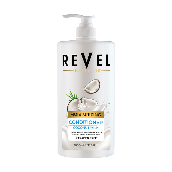 Revel Moisturizing Coconut Conditioner, the perfect solution for those seeking a nourishing and hydrating cleansing experience for their hair. Our Conditioner is expertly formulated with natural ingredients, including coconut oil, to deeply nourish and hydrate the hair, leaving it feeling soft, shiny, and healthy. Coconut oil is the key ingredient in our Conditioner, well-known for its deeply nourishing and moisturizing properties. It is rich in fatty acids and vitamins, which helps to nourish and strengthen the hair from within, giving it a natural shine and softness. Our Conditioner is also infused with other natural ingredients like aloe vera, which helps to soothe and hydrate the scalp. Our Moisturizing Coconut Conditioner is gentle yet effective, and is free from harsh chemicals like sulfates and parabens, making it suitable for all hair types, including color-treated hair. It has a light and refreshing coconut fragrance that lingers long after washing, giving your hair a luxurious experience. With regular use, our Conditioner helps to moisturize the hair and scalp, making it less prone to dryness and breakage. Our formula is specially crafted to restore the hair's natural moisture balance, leaving it soft, silky, and easy to manage.