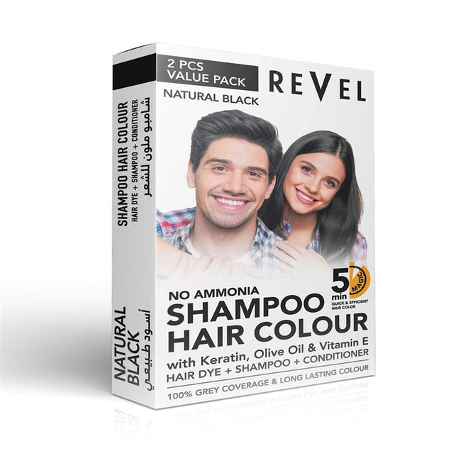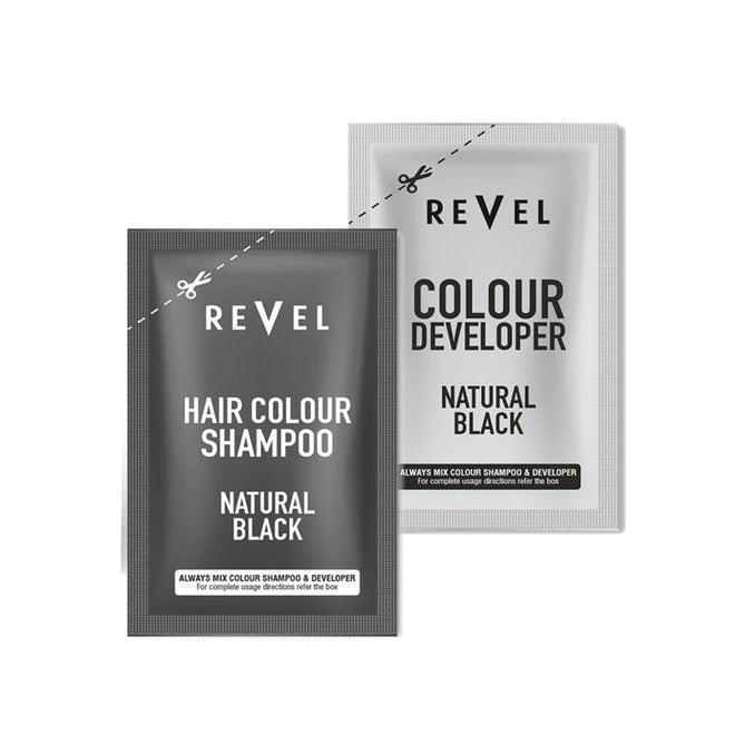 Achieve rich, vibrant, and long-lasting color with Revel’s Natural Black Hair Colour Shampoo. This easy-to-use shampoo and conditioner combo is formulated with keratin, olive oil, and vitamin E, providing 100% grey coverage while nourishing and strengthening your hair. Perfect for a quick, convenient color solution in just 5 minutes.